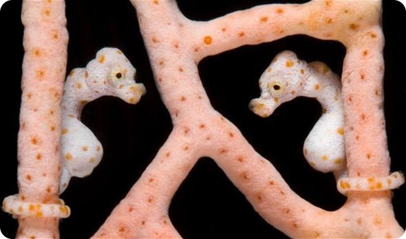 8. Карликовые морские коньки в морском веере. (Alex Mustard/Steve Bloom Images / Rex Features)