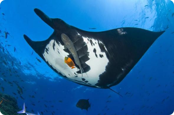 14. 35-сантиметровая рыба-ангел чистит тихоокеанского ската в водах островов Ревиллагигедос, Мексика. (Alex Mustard/Steve Bloom Images / Rex Features)