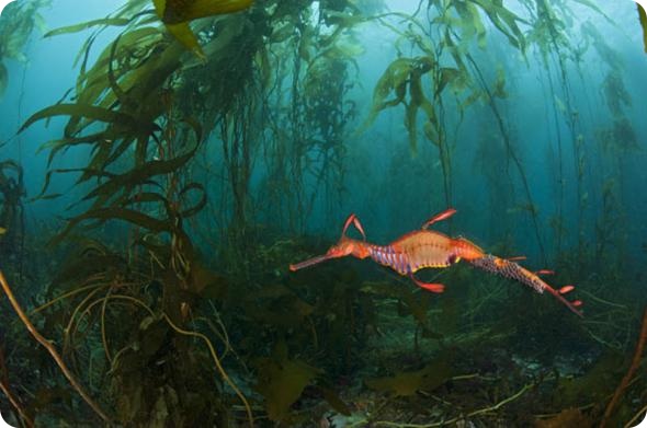 9. Морской дракон (Phyllopteryx taeniolatus) в огромном водорослевом лесу у берегов Тасмании. (Alex Mustard/Steve Bloom Images / Rex Features)