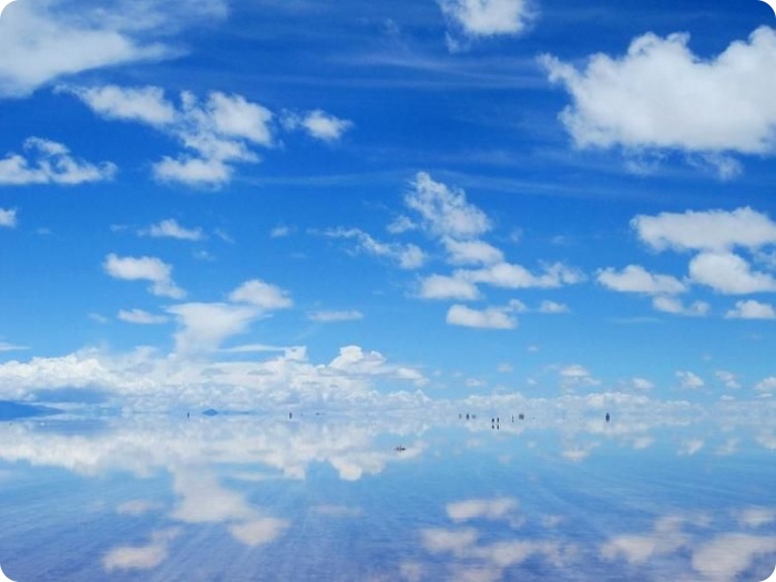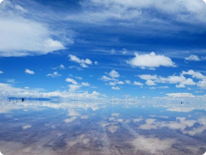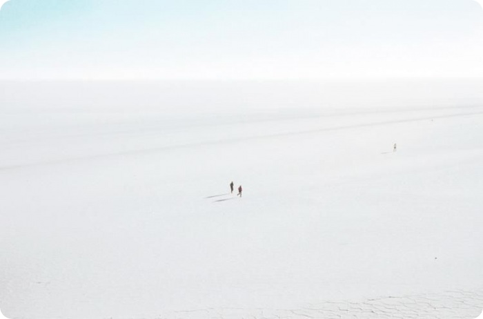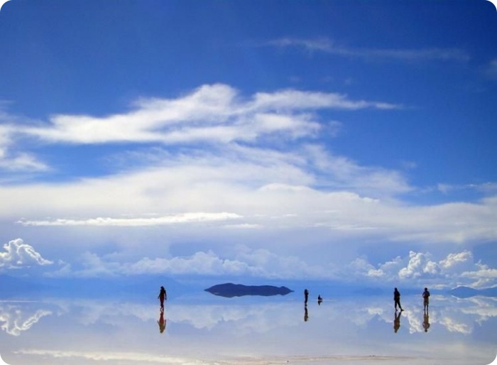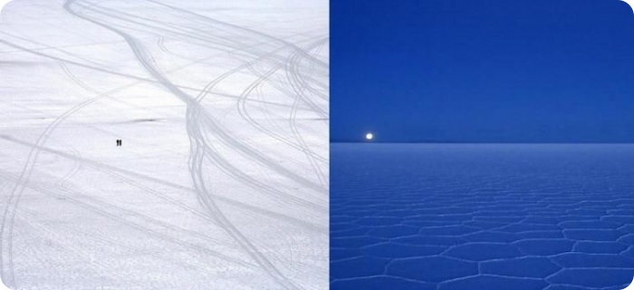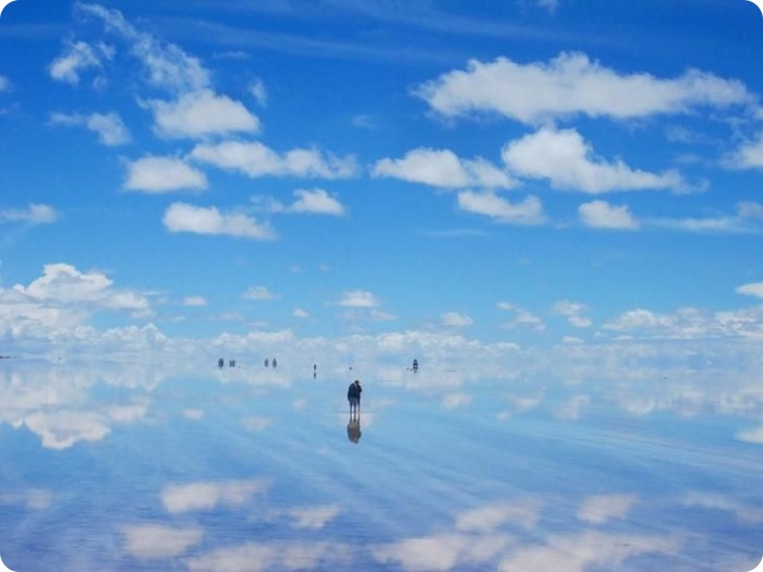 Посреди бескрайнего зеркального пространства кажется будто оказался на другой планете или настал конец света.