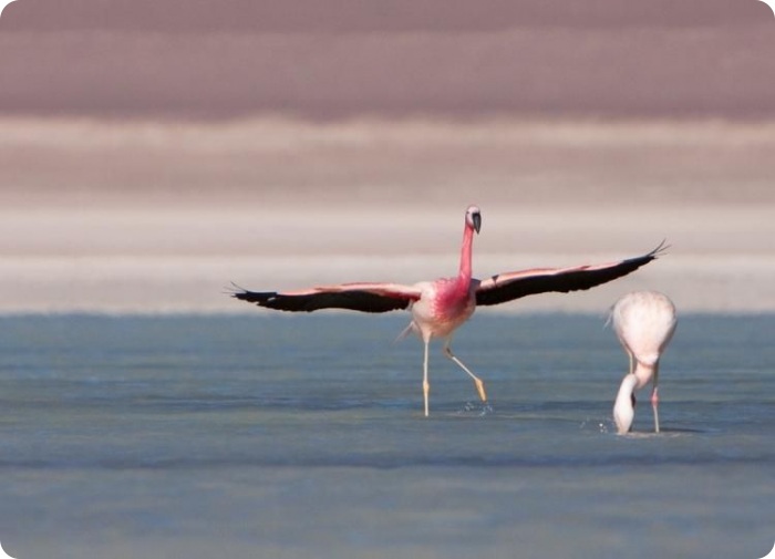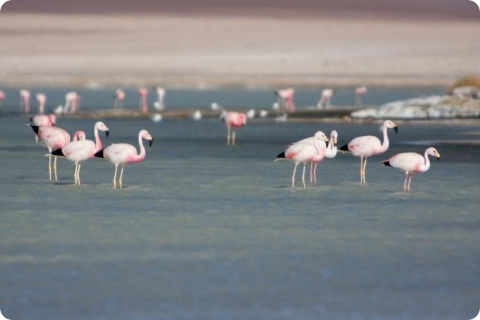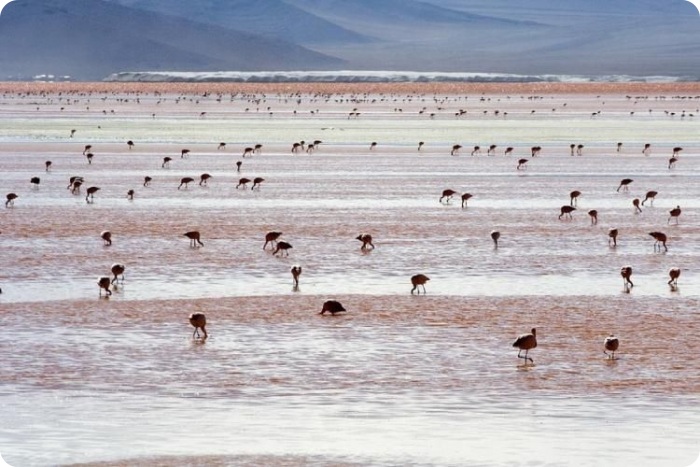 Каждый год в ноябре на солончак Уюни прилетают на размножение три вида южно-американских фламинго — чилийский фламинго, андский фламинго и фламинго Джеймса.