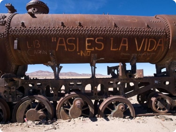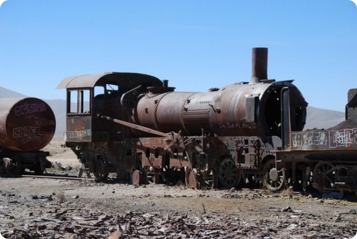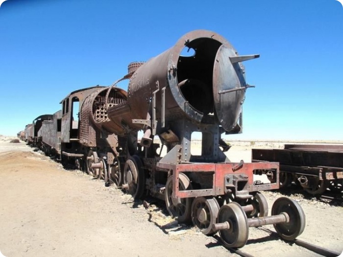 Одной из достопримечательностей солончака, куда также наведываются туристы, является кладбище паровозов, находящееся возле путей железной дороги из Антофагасты в Боливию в 3-х км от города Уюни. На «кладбище» покоятся паровозы названной железной дороги, отставленные от поездной службы в 1950-х гг., когда добыча минералов на окрестных рудниках резко упала. В 2006 г. местным самоуправлением была принята 15-и летняя программа развития региона, одним из пунктов которой является превращение «кладбища» в музей под открытым небом.