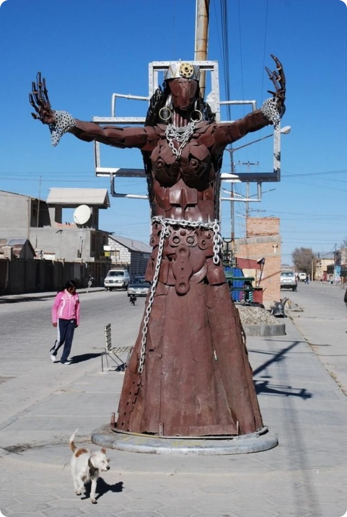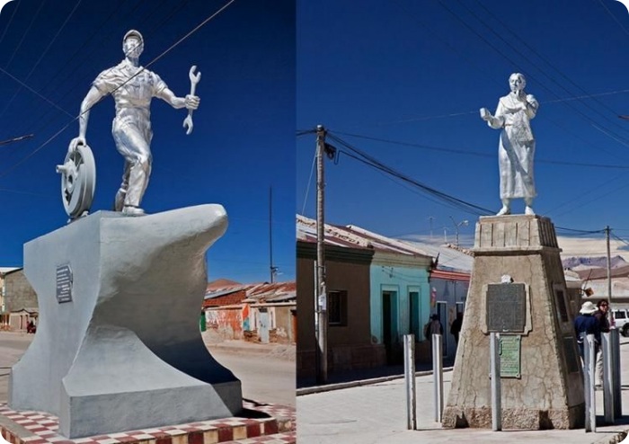 Рядом с солончаком расположен одноименный шахтерский городок Уюни, известный своими памятниками. Памятники рабочим: