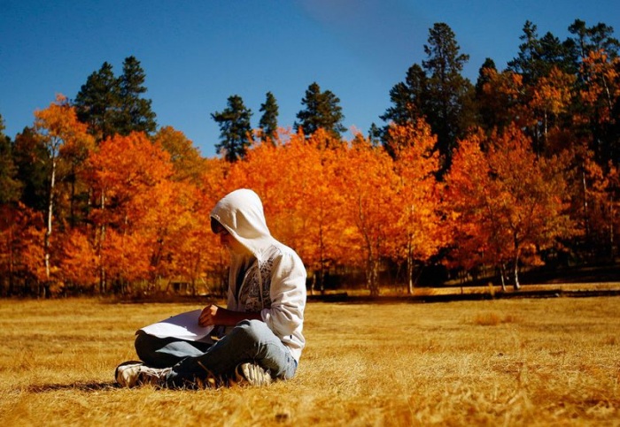 32. Восьмиклассник Алекс Пирсон работает над домашним заданием по стихосложению на горе Каспер, 29 сентября 2011 года в Каспер, Вайоминг. (AP Photo/The Casper Star-Tribune, Dan Cepeda)