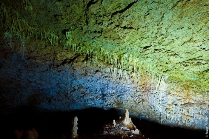 28. Здесь восхитительно: отвесные стены, покрытые натечным занавесом, глыбы известняка с натеками кальцита, загадочные «скелеты животных» под камнями.