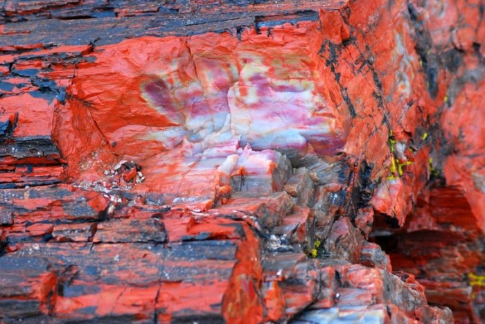 Разнообразие оттенков в песчанике и аргиллитовых слоях формирования Чинле, является результатом различного содержания минеральных веществ в донных отложениях и скорость, с которой отложения были заложены.