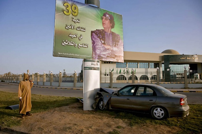 8. Разбитый автомобиль в воскресное утро перед зданием регионального собрания в Себхе. (George Steinmetz)