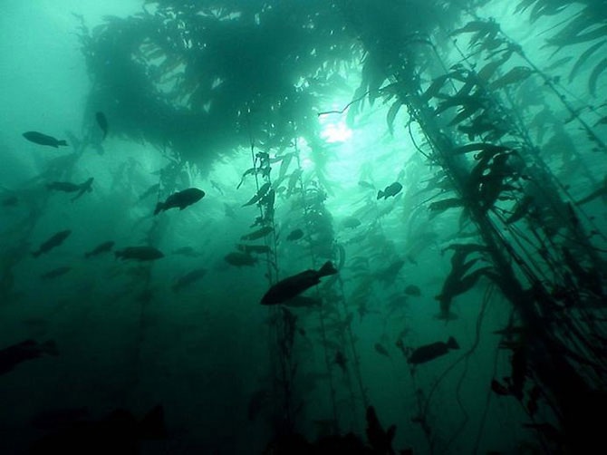 Гигантские водоросли — один из самых быстрорастущих организмов на планете. Она может вырасти на целых 100 метров в год, а достигая поверхности все еще продолжает расти, создавая целые плавучие острова. Как и лес на земле, водоросли под водой являются приютом для многих форм жизни.