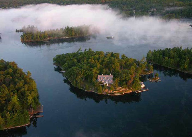 На карте эта часть Северной Америки, состоящая из 1864 островов, занимает примерно 2000 квадратных километра и располагается между двумя канадскими городами: Kingston и Brockville. Самое интересное, что любой клочок земли, который целый год со всех сторон омыт водой и на котором растут минимум два дерева, уже считается островом.