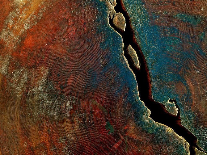 Кольца жизни. Срез дерева секвойя из семейства кипарисовых. Это одни из самых высоких деревьев на Земле — отдельные экземпляры секвойи достигают высоты более 110 метров. Максимальный возраст превышает 3 500 лет. Кстати, попробуйте посчитать, сколько лет этому дереву.