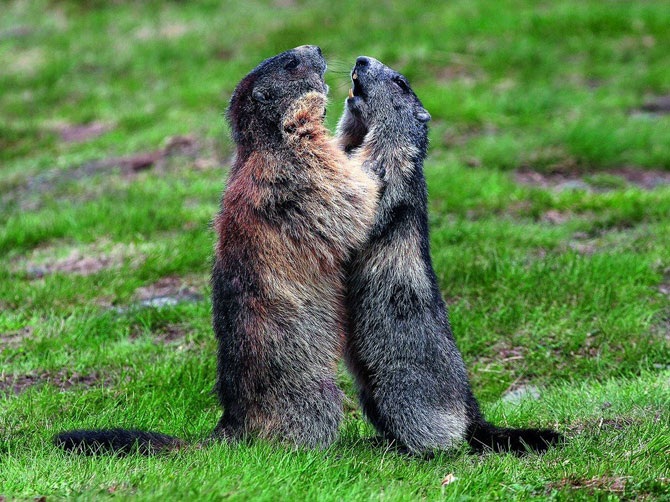 Альпийские сурки. Молодые сурки почти все время проводят в играх и, кажется, не замечают фотографа.