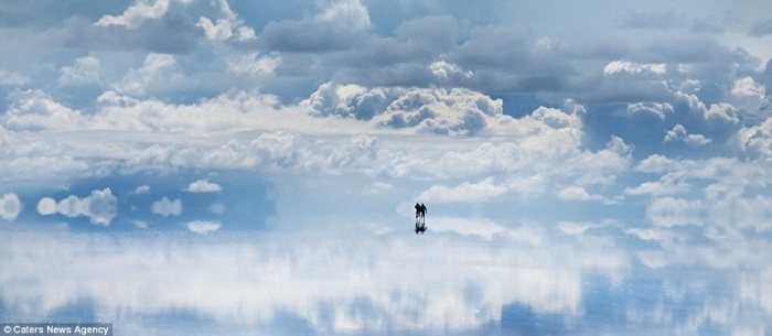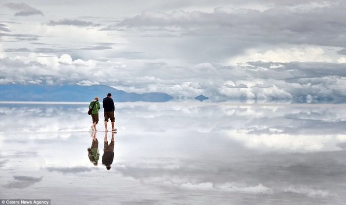 В сезон дождей солончак покрывается тонким слоем воды и превращается в огромное зеркало.