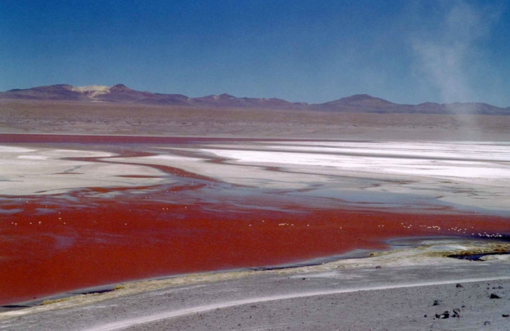 В зависимости от времени суток и температуры она меняет свой цвет от кроваво-красного до фиолетового. Такой необычный оттенок придают воде лагуны крошечные водоросли, которые производят каротин, чтобы защититься от сильного ультрафиолетового излучения.