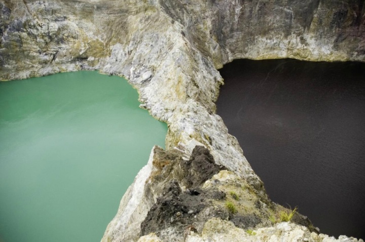 4. Два других озера, Tiwu Nuwa Muri Koo Fai (Озеро юношей и девиц) и Tiwu Ata Polo (Колдовское, или Волшебное озеро) разделены стеной кратера и вода в них, как правило, зеленого и красного цвета соответственно. Вулкан Келимуту представляет интерес для геологов, потому что три озера разных цветов находятся на вершине одного и того же вулкана.