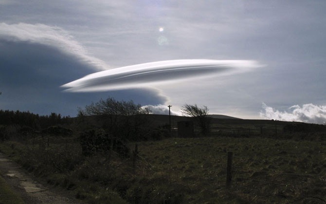 Облака в форме линзы формируются на большой высоте и чаще всего образуются, когда влажный воздух проходит через горный хребет и адиабатически нагревается (т.е. без передачи тепловой энергии).