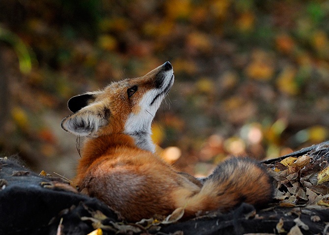 Лиса вдыхает запахи приближающейся осени, штат Кентукки, США.