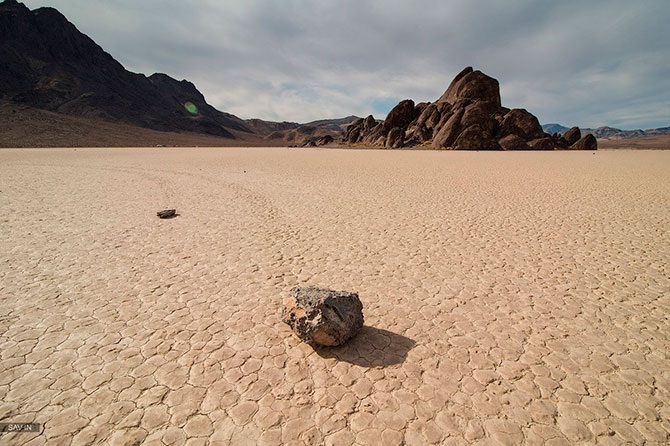 Но самым неоднозначным участком путешествия у нас было место под названием Race Track. Здесь находится феномен, который никто не может объяснить: «Что?! Камни?! Сами ползают? По дну озера?!».