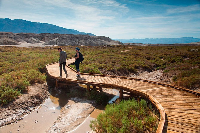 Это не единственный соленый «оазис» в этой пустыне. Не забудьте погулять по Солёному ручью «Salt Creek», концентрация соли в котором в 4 раза превышает морскую. Но даже в такой воде умудряется жить рыба. Их косяки вы обязательно увидите с мостков, проложенных над ручьем: