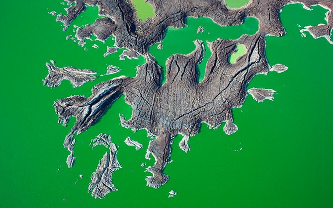 Скалистые породы в озере Туркана, расположенном в Восточно-Африканской зоне разломов в Кении.