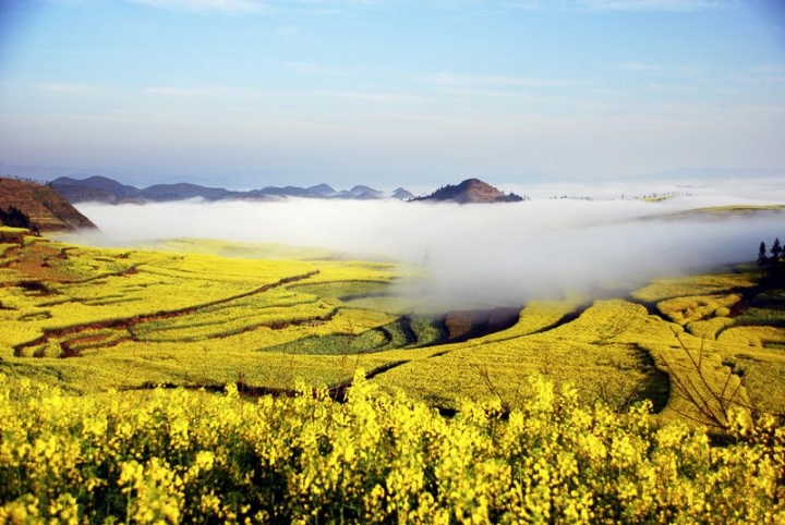 Территория Люопинг находится в префектуре Куджинг, Китай. Место известно своими красивыми пейзажами весной, когда в полной мере расцветают поля из цветков рапса, и горы окружены золотым природным морем. Подобная картина обладает захватывающим эффектом. Туристы съезжаются сюда, чтобы насладиться природой и сделать несколько интересных ярких фотографий. Цветение полей продолжается вплоть до конца июня. Именно этот период является наиболее популярным сезоном для путешественников в графство Люопинг. Для их удобства государство разрабатывает специальные автобусные маршруты, помогающие людям увидеть особенности местности, уединиться с природой, почерпнуть для себя неизвестные им ранее природные чудеса.