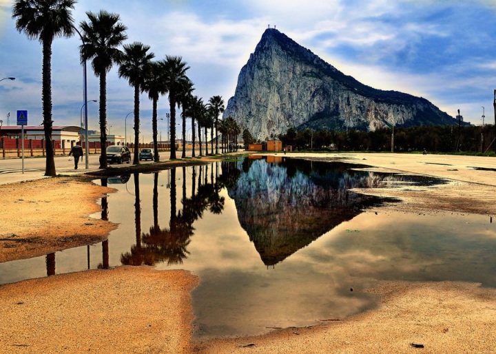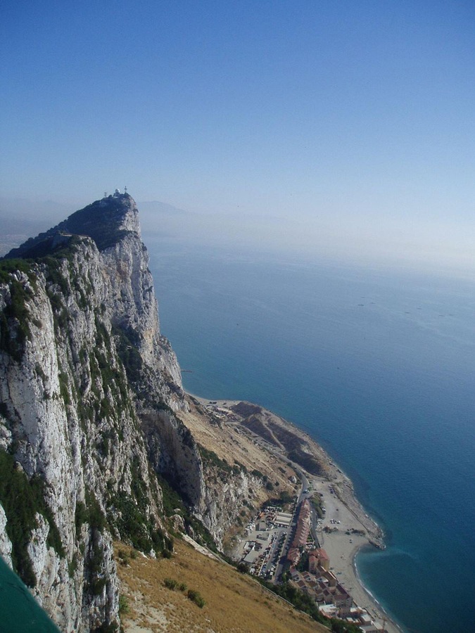 8. В настоящее время скала образует полуостров, выдающийся в пролив примерно на 5 км от южного берега Испании. С севера скала резко взмывает от уровня моря до высоты 411,5 м, где расположена батарея Рок-Ган. Восточная часть скалы обрывается утёсами к песчаным склонам, которые были образованы в период оледенения. На этой часть скалы в 1903 году была построена система сбора воды, которая затем по каналам подаётся на два завода по опреснению и очистке. Сделано это было для снабжения небогатого естественными источниками Гибралтара. На более пологом западном склоне горы располагается заповедник и сам город.