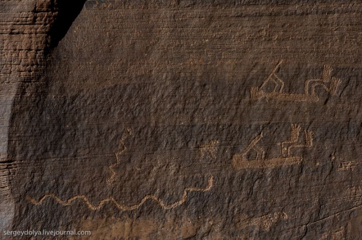 Наскальные рисунки с лежащими флейтистами — по словам проводника, единственные в своем роде: