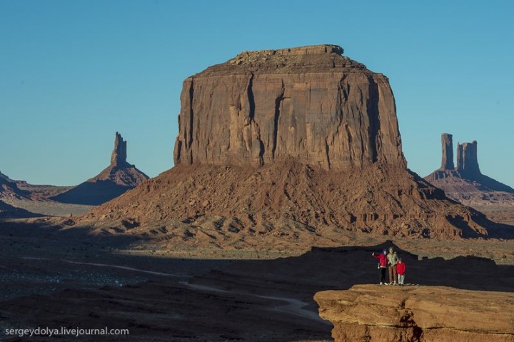 На этом месте действительно всегда был индеец, который за два доллара позировал туристам, однако перед нашим приездом он умер от старости. Я снял на знаменитой точке семью: