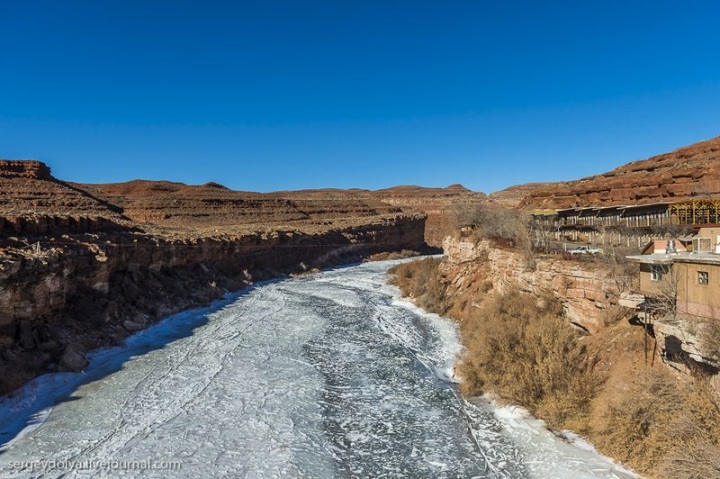 Затем мы поехали в город Моаб. По дороге пересекли реку, и я решил сделать кадр, чтобы показать насколько было холодно: