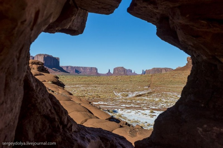Между Ютой и Аризоной находится территория индейцев Навахо. Эта крупнейшая в США резервация — страна в стране со своими законами, порядками, правительством и налогами. Образована в 1986 году по договору с властями США. Сейчас на территории проживают около 170 тысяч человек. Главной статьей дохода индейцев является обслуживание туристов, приезжающих в Долину Монументов…