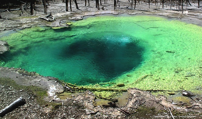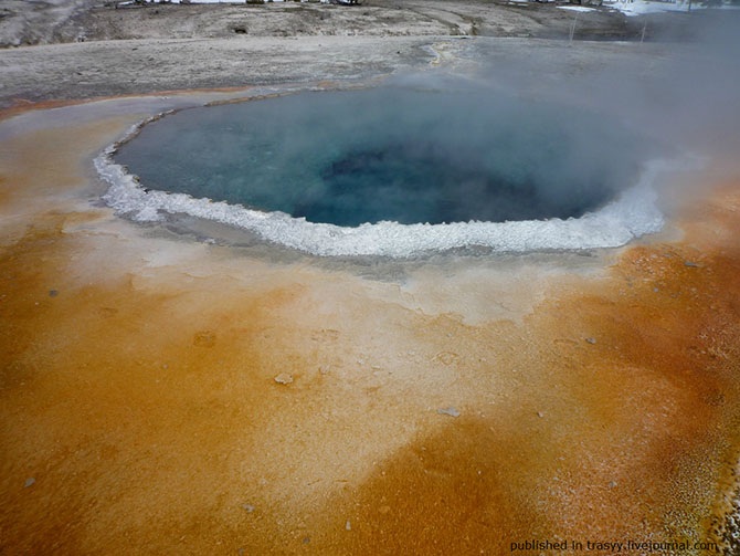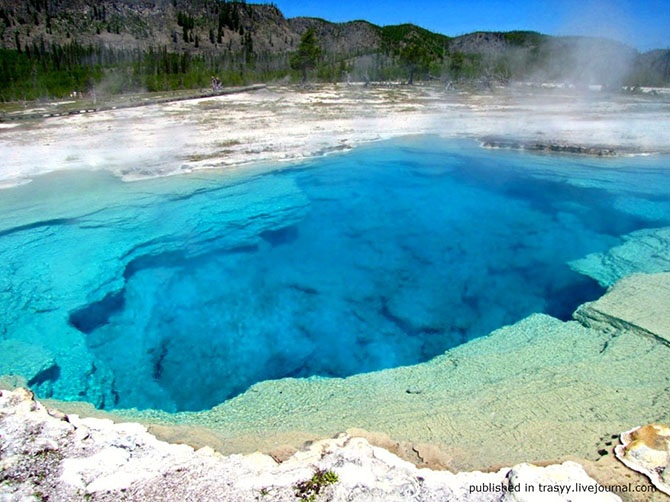 Этот источник глубиной 2,4 метра и температурой около 90 градусов расположен в системе верхних гейзеров парка Йеллоустоун.