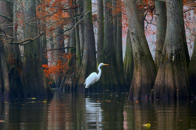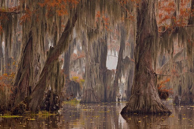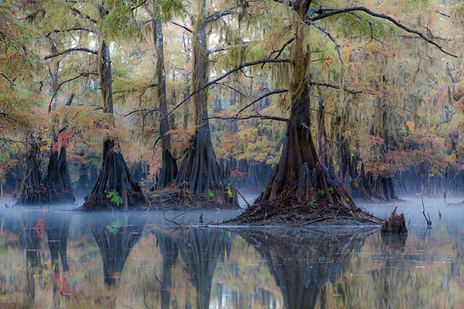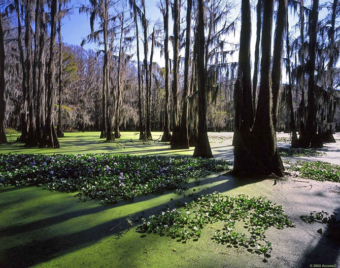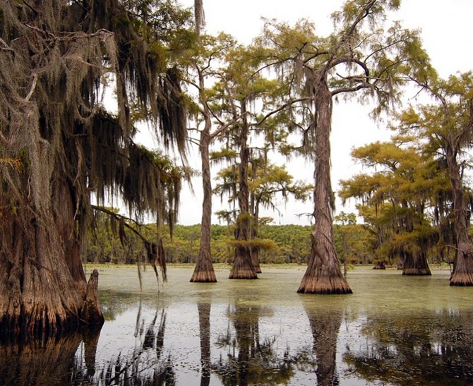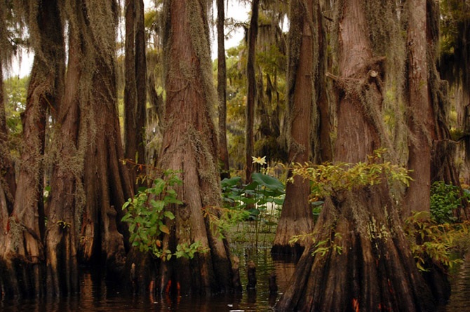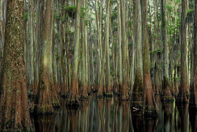 Кипарисы, особенно те, что находятся в воде, часто имеют особые образования, которые называются «коленями кипариса». Они представляют собой отростки, напоминающие пеньки, но растущие прямо из корней дерева. До сих пор ученые размышляют над тем, зачем кипарисам нужны эти специальные образования. Одна из теорий гласит, что для дополнительного насыщения корней кислородом, другая – что отростки помогают деревьям укрепиться в земле, чтобы их не вырвало ураганом.