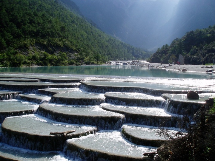 Белые террасы раскинулись на 140м в длину и на 160м в ширину и являются одними из самых больших карбонато-кальцеевых террас в Китае.