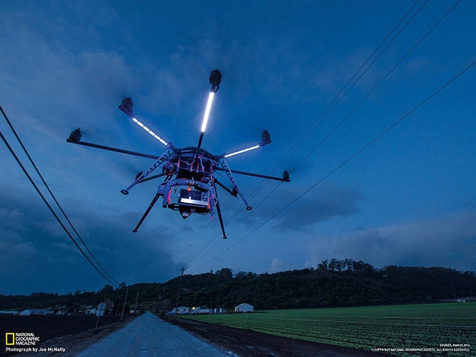 Радиоуправляемый летающий дрон, снабженный восемью «руками», несущий на себе камеры и способный снимать пейзажи с высоты.