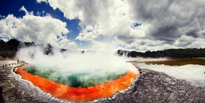 Вай-о-Тапу — одно из самых прекрасных, но малоизвестных природных чудес Новой Зеландии. Отправившись на трехчасовую прогулку, каждый поворот представляет новое чудо – от гейзеров до невероятно цветных озер. Есть также грязевые бассейны и популярный Бассейн Шампанского — вероятно, самая известная привлекательность этих мест, со своим ошеломляющим внешним кольцом оранжевого цвета.