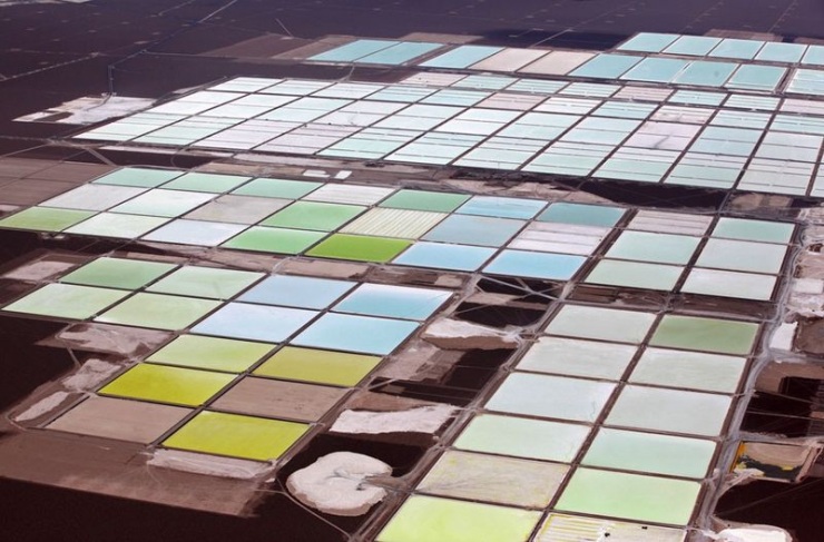 2. Вид с воздуха на соляной бассейн и технологические участки литиевой шахты Soquimich на соляном плато Атакама, втором по величине соляном плато в мире, в пустыне Атакама на севере Чили, 10 января 2013 г. (Reuters/Ivan Alvarado)