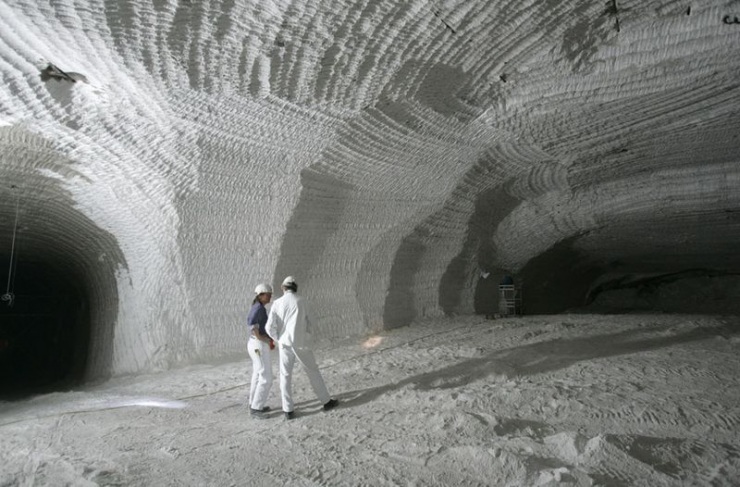 5. Двое сотрудников Федерального ведомства по радиационной защите стоят в камере хранения номер 7 в бывшей соляной шахте Ассе в Ремлингене, Германия, среда 24 июня 2009 г. Бывшая шахта используется в качестве глубокого геологического хранилища для радиоактивных отходов. (AP Photo/Joerg Sarbach)