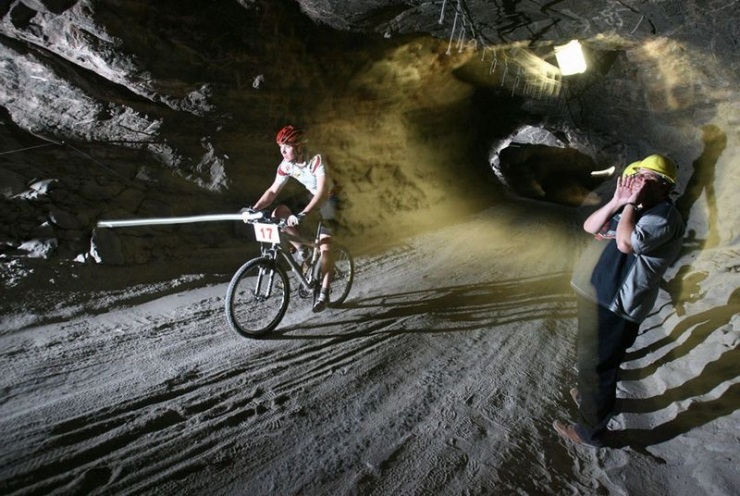 16. Горный байкер соревнуется в ходе в 21-х «Экстремальных горных гонок» 17 ноября 2007 года в «Glueck Auf», бывшей соляной шахте в Зондершаузен, Германия. Около 50 спортсменов приняли участие в соревновании на глубине 800 метров, где температура достигает 30 градусов по Цельсию, а влажность всего лишь 20%. Jens-Ulrich Koch/AFP/Getty Images)