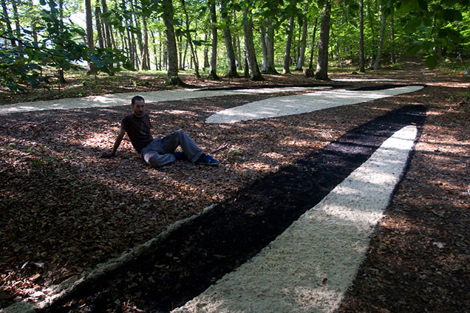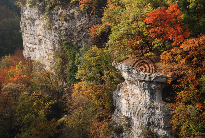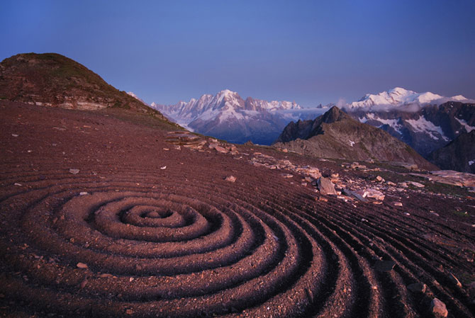Зыбь на земле. Проход на уступе на высоте 2700 метров над уровнем моря с видом на Монблан. Творение Мейера имеет 20 метров в диаметре.