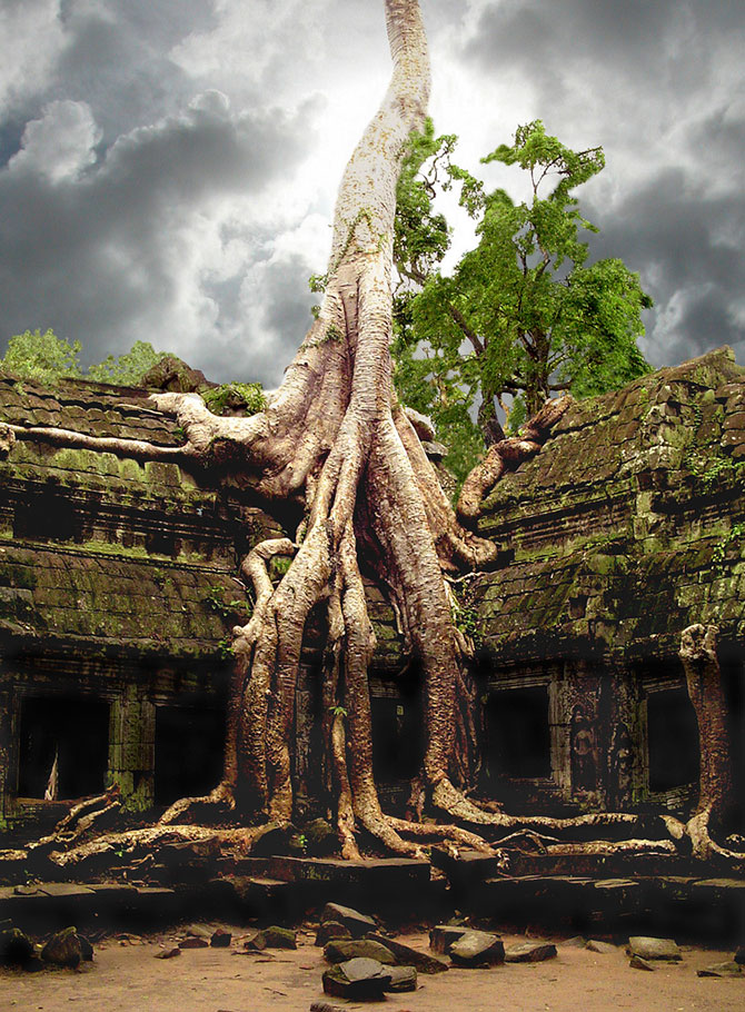 Отдельного внимания заслуживают хлопковые деревья (сейбы), произрастающие на руинах древнего камбоджийского храмового комплекса Ангкор-Ват – их корни давно уже образовали единое целое с древними каменными постройками величественного храма