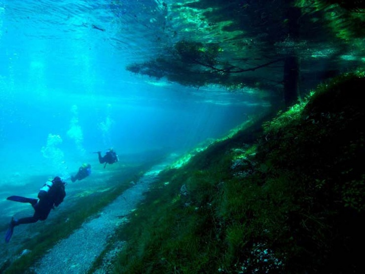 5. К тому времени, когда парк оказывается полностью затопленным, окружающая его земля успевает покрыться зеленью альпийских лугов. Вот почему это удивительное озеро названо Зеленым.