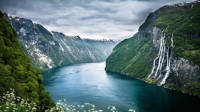Гейрангерфьорд самый посещаемый фьорд, знаменит самыми высокими и самыми живописными водопадам: семь сестёр, Фата невесты и Жених.