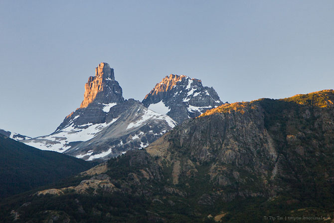 Карретера Аустраль ведёт в очередной национальный парк Серро Кастильо и наконец становится асфальтовой. Солнце клонится к закату и золотит вершины гор. Парк проедем, не задерживаясь, наступает ночь, а до теплой кровати в городе Койайке ещё сто километров.
