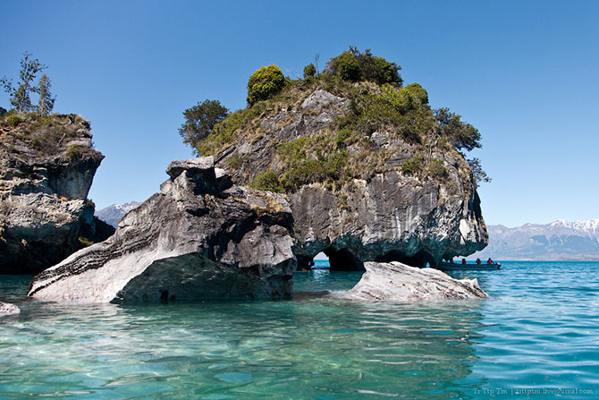 На восточном берегу озера Хенераль Каррера, рядом с деревушкой Пуэрто Рио Транкило расположился полуостров, скалы которого целиком состоят из мрамора.