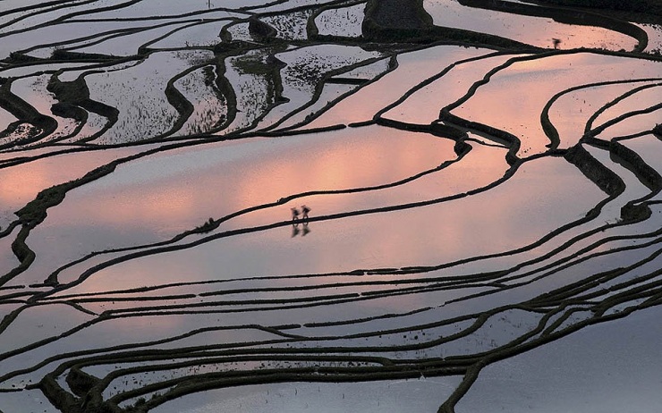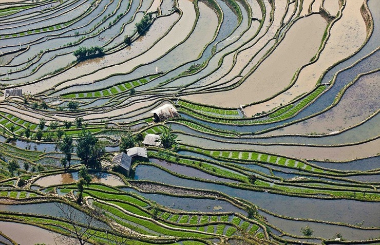 Рисовые террасы, вырезанные вручную на склонах холмов, считаются рукотворным чудом человеческой цивилизации. По своей структуре они являются самоорошающейся системой, устроенной так, чтобы верхний слой почвы – в которой и растет рис – не вымывался водой. Возраст этих террас составляет примерно 1300 лет.