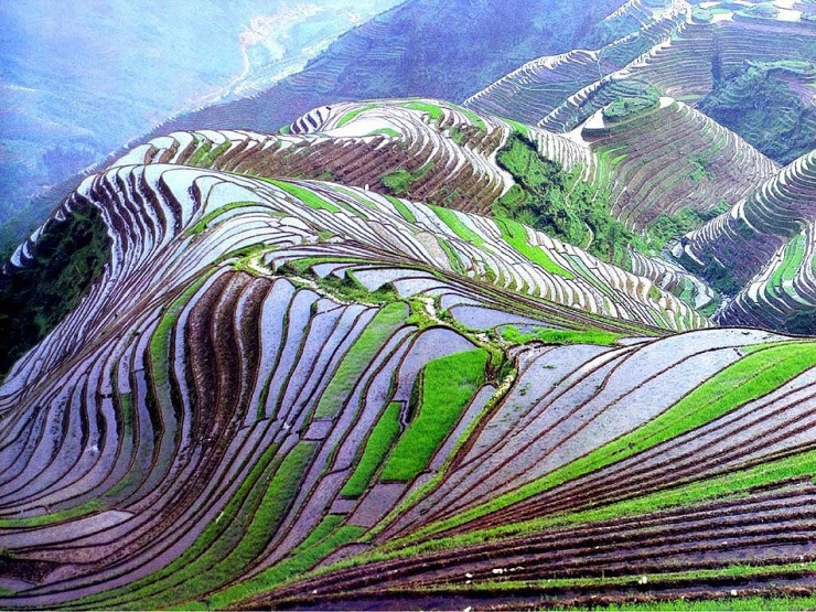 1. Культурный ландшафт «Рисовые террасы Хунхэ-Хани» — это объект общей площадью 16 тыс. 603 гектара расположен на юге провинции Юньнань и включает исключительной красоты рисовые террасы, каскадом спускающиеся по склонам гор Айлао к берегам Хунхэ, (Красная река).