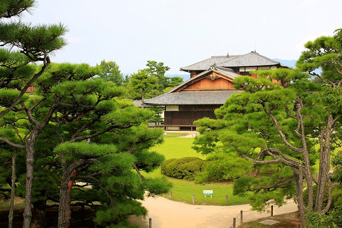 Замковый комплекс включает в себя замок Хоммару и замок Ниномару. Замок и сады Хоммару расположены во внутреннем кольце укреплений. Замок Ниномару, кухни, строение для охраны и еще несколько садов расположены между этими двумя кольцами укреплений.