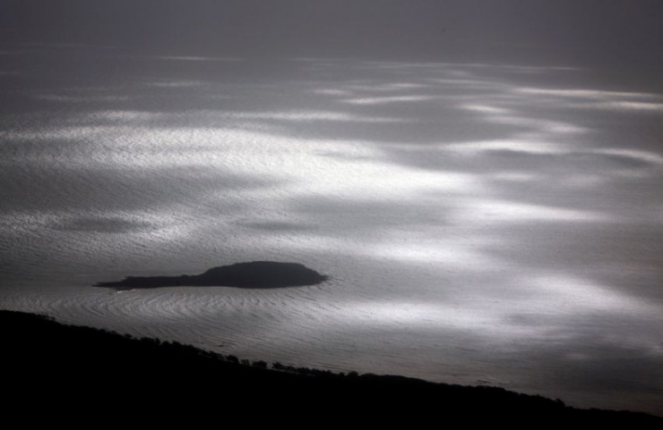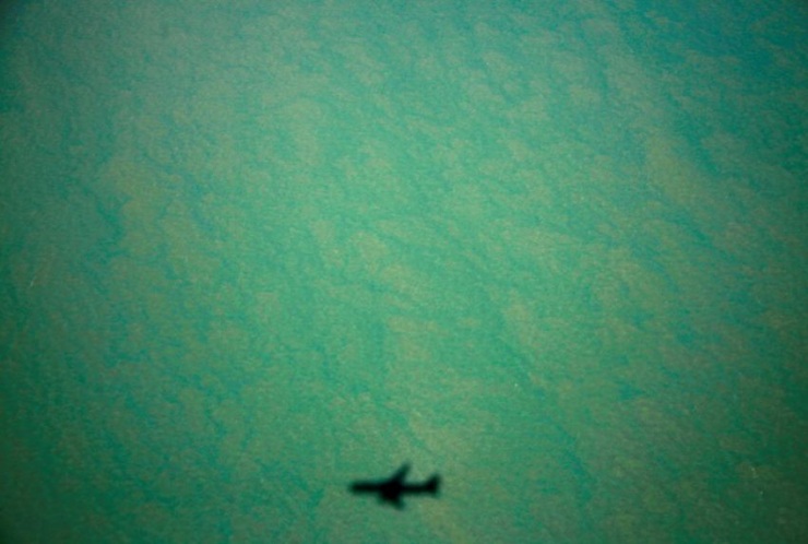 Самолет Boeing 767 бросает тень над бухтой рядом с полуостровом Арнем-Ленд