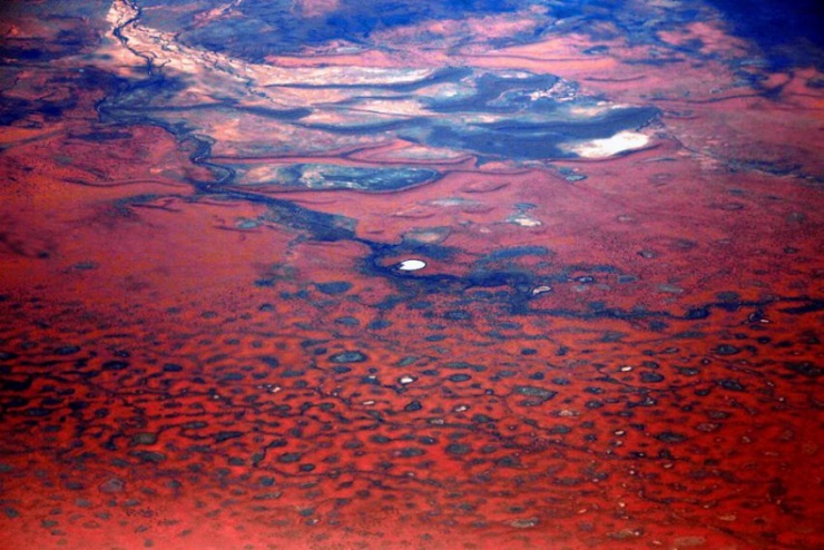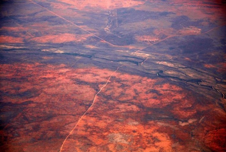 Грунтовая дорога и река пересекаются в пустыне Танами