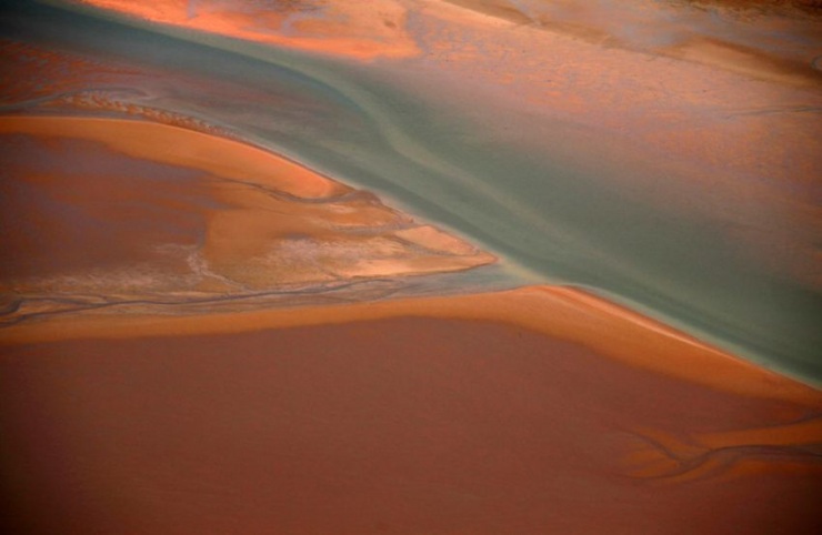 Небольшая река теПляж вдоль побережья Арнем-Ленд, Северная территориячет среди песчаных дюн в пустыне Танами