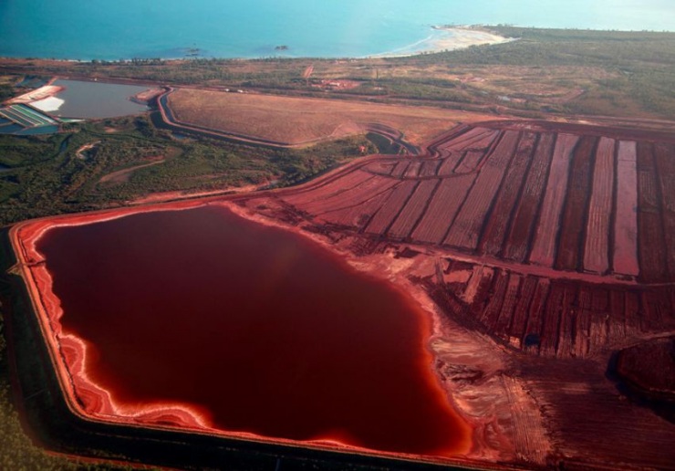 Дамба наместе добычи бокситов компанией Rio Tinto Alcan Inc в области Гоув, известной как Нуланбеи